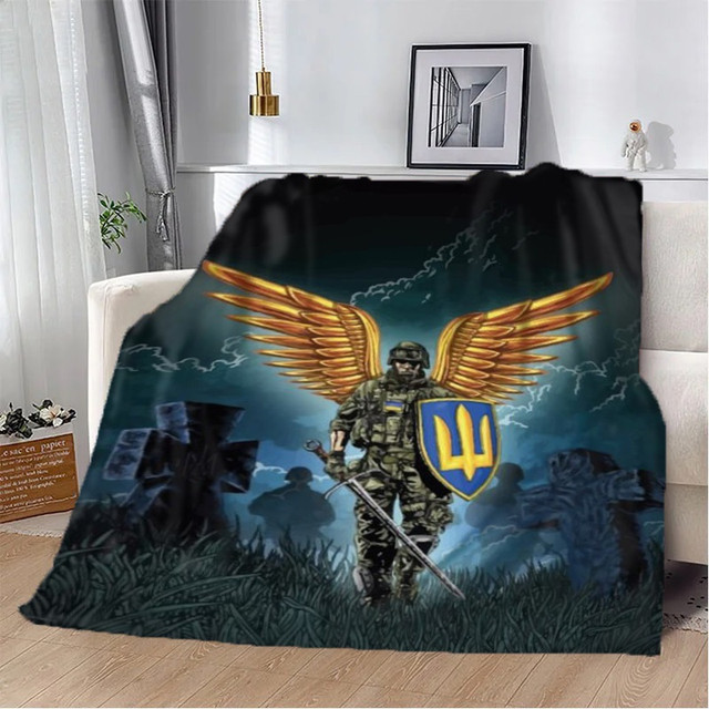 Плед патріотичний 3D Крилатий Воїн з яскравим друком стане відмінним подарунком близькій людині, порадує погляд і зігріє прохолодними вечорами. Теплий, м'якенький та дуже приємний на дотик, яскравий подарунковий плед з індивідуальним зображенням зігріє не тільки тіло, а і душу.