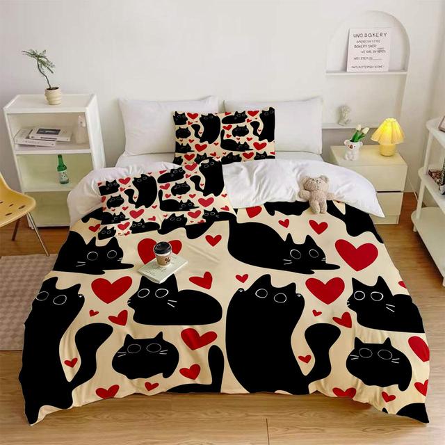 Постільна білизна 3D полуторна з мікросатину Котики кохання 32398 150х215 см 50х70 см