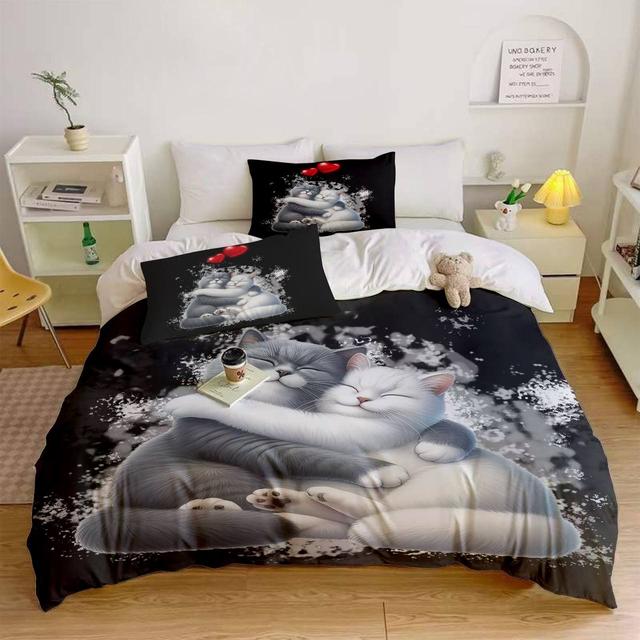 Постільна білизна 3D полуторна з мікросатину Закохані котики 31401 150х215 см 50х70 см